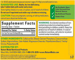 ✅Ironsupportsupplement:containsone365-countbottleofNatureMadeIron65mg(325mgFerrousSulfate)Tabletsfora365-daysupply